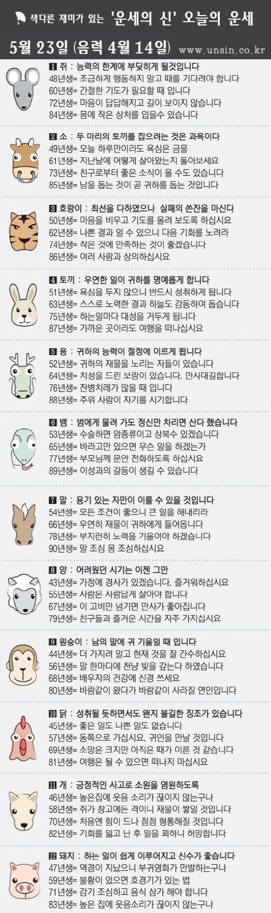 [직장인을 위한 오늘의 운세] 2013년 5월 23일 목요일(음력 4월 14일)