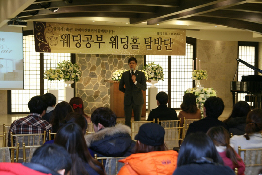 포털사이트 다음의 결혼 분야 대표 카페인 '웨딩공부(cafe.daum.net/wedgongu)'는 이같은 피해를 예방하고 예비 신혼부부에게 실질적인 도움을 주기 위한 취지로 웨딩홀탐방단 행사를 정기적으로 개최하고 있다.