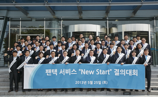 팬택(대표이사 부사장 이준우)의 전국 서비스센터 점장 및 고객감동(CD)실 임직원이 25일 상암동 본사에서 고객감동 슬로건 선포식을 포함한 '팬택 서비스 New Start 결의대회'를 가졌다.