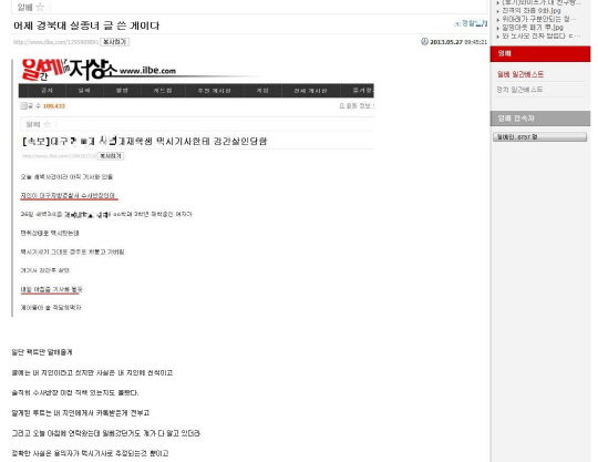 일베에 '대구 여대생 수사정보' 올린 네티즌 해명 "카톡으로..."