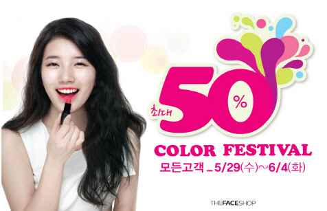 더페이스샵이 5월 29일부터 7일간 할인행사 '컬러 페스티벌'을 연다.