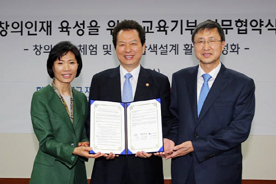 현대차 정몽구 재단(이하 정몽구 재단)은 29일(수) 오후 서울 종로구 계동 재단 회의실에서 유영학 재단 이사장, 서남수 교육부 장관, 강혜련 한국과학창의재단 이사장 등 주요 관계자들이 참석한 가운데 창의인재 육성을 위한 업무 협약을 체결했다.