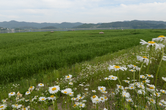 어른 키만큼 훌쩍 자란 초록의 갈대가 넘실대는 신성리에는 갈대밭 탐방 루트가 만들어져 호젓한 갈밭기행이 가능하다. 아울러 이즈음 신성리 갈대밭 둔덕에 핀 하얀 사스타데이지는 초록의 물결 속에 하얀 자태가 더 돋보인다.