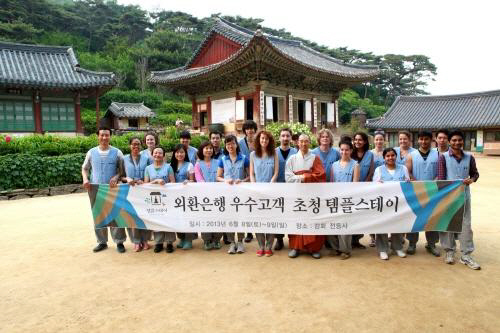 이번 외환은행과 한국불교문화사업단과의 '템플스테이(Templestay) 행사'는 외환은행 영업점을 비롯한 외환은행 공식 영문 Face book 등 다양한 온라인 채널을 통해 모집한 총 22명(미주 9명, 유럽 4명, 아시아 9명)의 국내 체류 외국인 고객이 참가했으며, 이틀간 발우공양, 108배 체험, 스님과의 차담 등 한국의 불교문화 및 전통문화를 이해하고 소통할 수 있는 다양한 프로그램으로 구성되었다.