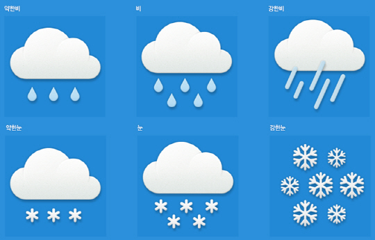 이와 함께, 날씨 상태를 더욱 손쉽게 확인할 수 있도록날씨 정보 이미지를 단순 날씨 상태 뿐 아니라, 상태의 정도까지 확인할 수 있도록 보다 세분화하고, 상태에 따라 서비스 배경색도 구분해 제공한다. 예를 들어, 비오는 날이면, 현재 강수량에 따라 그 정도를 가늠할 수 있는 차별화된날씨 상태 이미지가 제공된다.