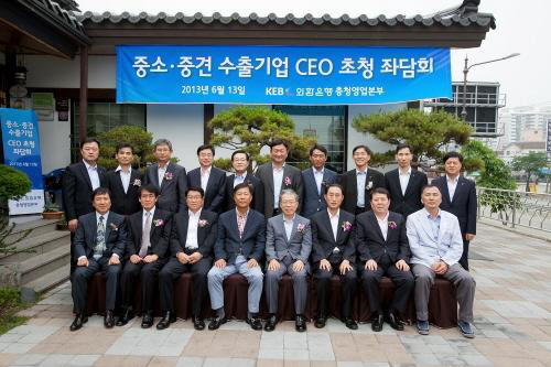 외환은행(은행장 윤용로/www.keb.co.kr)은 지난 13일 <현장 중심 경영을 통한 중소·중견기업 지원 확대> 방안의 일환으로 충청영업본부를 방문하여 지역내 중소·중견 수출기업 경영인의 애로사항 청취 및 실질적 지원방안을 논의하는 충청지역 <중소·중견 수출기업 CEO 초청 좌담회>를 개최하였다고 14일 밝혔다.