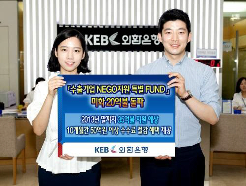 외환은행(은행장 윤용로/www.keb.co.kr)은 정책당국의 시책에 부응하고 글로벌 경기침체로 어려움을 겪고 있는 수출기업을 위해 지난해 8월 시행한 '수출기업 NEGO지원 특별 FUND'실적이 미화 20억달러 돌파 및 펀드 운용기간을 12월말까지 시행한다고 17일 밝혔다.