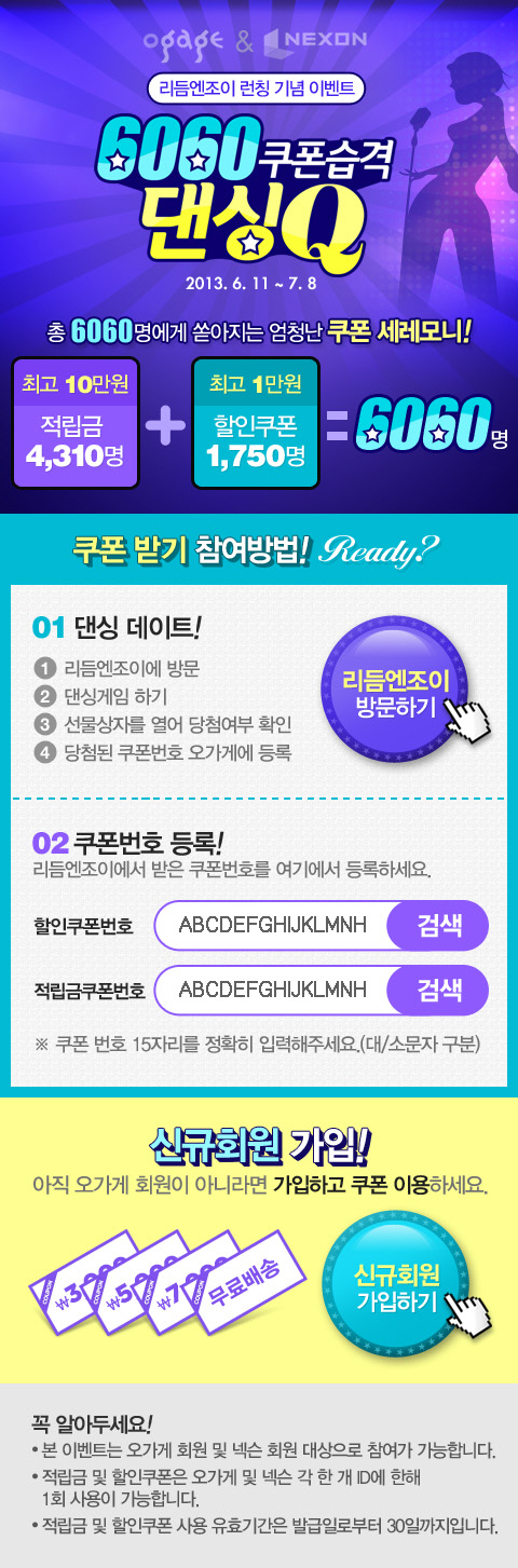 오가게는 <리듬엔조이> 여성 타겟층의 주된 관심사와 취향을 적극 반영하여, 게임 적립금을 트렌디한 패션 아이템으로 교환 가능한 '오가게 적립금 쿠폰 및 할인 쿠폰'을 6월 18일에서 7월 15일까지 총 6,060명에게 지급한다.