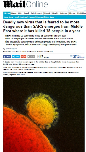 최근 중동지역에 사스(중증 급성 호흡기 증후군)보다 치명적인 바이러스가 출현했다고 외신들이 전했다.