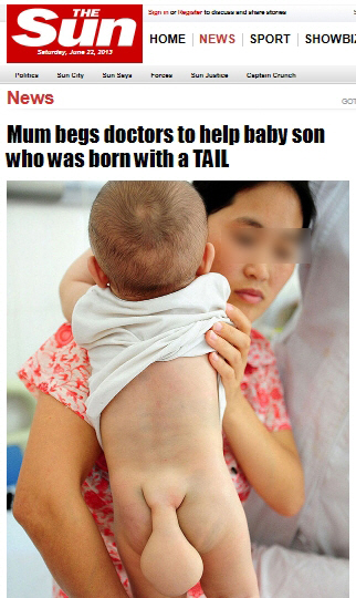 중국에서 7개월된 남자아기가 꼬리를 가지고 태어나 고통을 받고 있다는 소식이 전해져 화제다.