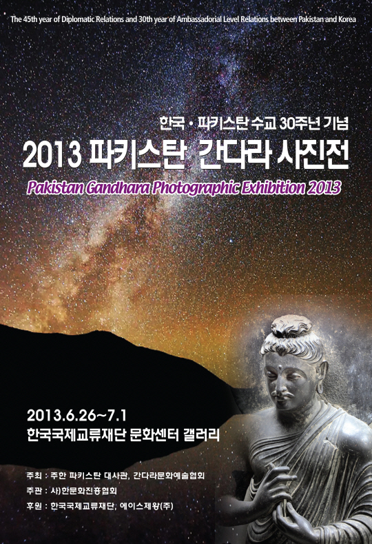 한문화진흥협회(협회장 정재민)가 한국-파키스탄 수교 30주년을 기념, 파키스탄 간다라 풍경과 유적이 담긴 '2013 간다라 사진전'을 6월27일부터 7월1일까지 개최한다. 한국과 파키스탄의 문화교류와 우호증진을 위한 행사로 주한 파키스탄 대사관과 공동 주최하고, 한국국제교류재단과 에이스제왕(주)가 후원한다.