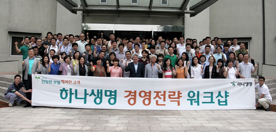 하나생명(대표 김태오)이 상반기 중간관리자 경영혁신 워크샵을 경기도 용인 하나빌 연수원에서 22일 열렸다. 김태오 대표와 전 부서별 과장급 이상 임직원 총 100여명이 참석한 이번 워크샵에서 하나생명은 5년간의 행보를 되짚어보고 향후 손익 증대와 비용절감 등 미래가치 창출을 위한 토론의 장을 마련했다. 또 임원진들의 역할 및 비전 정립과 하나생명의 기업문화에 대한 이해를 바탕으로 업무전략과 발전방향을 제시하며 부서협력을 강화했다.