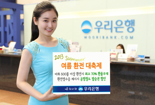 우리은행(은행장 이순우)이 여름방학 및 휴가 등 해외여행 성수기를 맞아 환전 고객 대상으로 여름 환전 대축제를 9월 17일까지 실시한다.