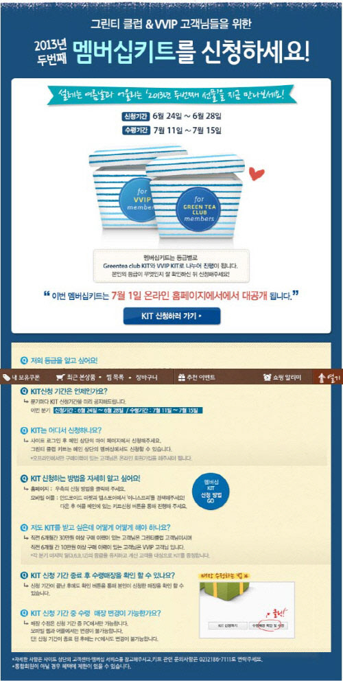 이니스프리가 멤버십키트 신청으로 인해 홈페이지가 다운됐다.