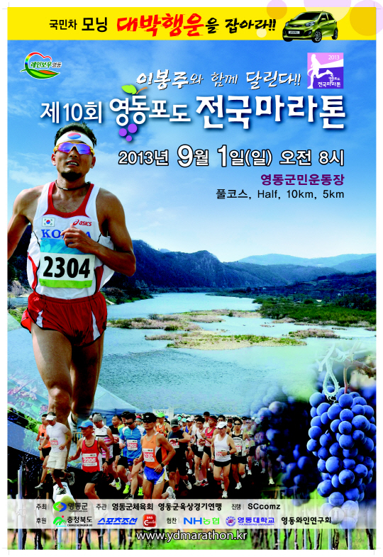 [9월1일 영동포도 전국마라톤] "이봉주와 함께 환상의 금강변 코스 달려요"