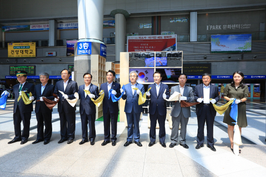 서울 용산역에서 DMZ(비무장지대)를 실시간으로 볼 수 있는 영상체험공간이 문을 열고 서비스를 시작했다. 문화체육관광부와 (사)DMZ문화포럼은 DMZ 관광 활성화를 위해 24일 오후 서울 용산역 중앙광장에서 DMZ 접경 지역의 '10景(경) 10味(미)'를 실시간으로 볼 수 있는 영상 체험공간 '미디어 큐브' 설치 개소식을 가졌다.