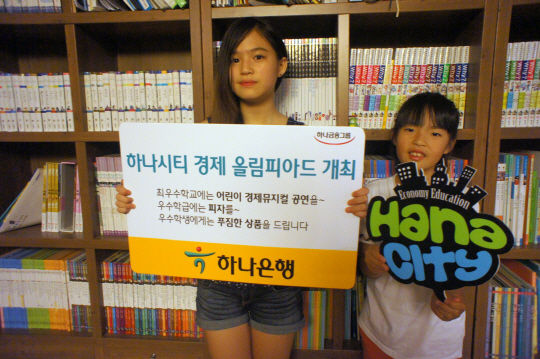 하나은행(은행장 김종준, www.hanabank.com) 은 26일 하나은행이 운영하고 있는 어린이 경제교육 사이트인 '하나시티'(www.hanacity.com)' 를 통해 초등학생 대상 경제 올림피아드를 다음달 17일까지 개최한다고 밝혔다.