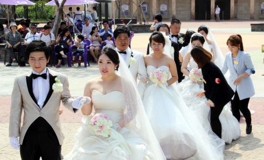 부산경마공원에서(본부장 이종대)는 지난 22일 4쌍의 신혼부부들이 결혼식을 올렸다. 가장 인기있는 호스토리랜드에서 진행된 이날 결혼식은 지난 5월 부산시와 경상남도 각 기관의 추천을 받은 사회 소외계층 4쌍의 결혼식 지원을 약속하면서 급물살을 탔다. 다문화가정과 저소득층 등 지원이 절실한 소외계층을 대상으로 한 결혼식은 최근 정부 및 지자체를 중심으로 검소한 결혼식 지원 캠페인과 같은 것이다. 이른바 '작은 결혼식'이라는 이름으로 잘 알려진 사업으로, 결혼장소로 공공기관을 개방해 비용을 최소화해 결혼을 지원하는 최근의 움직임에 동참하는 취지다.