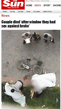 중국 커플이 창가에서 성관계를 갖다가 추락한 것으로 추정되는 황당한 사고가 발생했다.