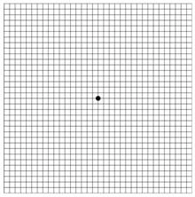 이 같은 자가진단을 한 후 그림의 작은 네모 칸이 같은 크기로 보이지 않거나 모퉁이가 모두 보이지 않을 경우, 격자가 비어있거나 뒤틀리고 희미한 부분이 있다면 안과에서 정확한 진단을 받아야 한다.