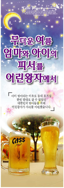 키즈 레스토랑 업계 1위를 달리고 있는 '키즈카페 어린왕자'가 엄마들을 위한 이색 이벤트를 마련했다. 어린왕자는 강남, 인천, 논산, 구미점 등을 비롯해 전국 주요 지점에서 7월20일까지 여름맞이 생맥주 무료 이벤트를 진행한다. 키즈카페에서 아이가 노는 동안 엄마도 편안하게 즐길 수 있도록 배려한 것. 오후 6시 이후에 어린왕자에서 식사를 주문하는 성인 고객들에게는 생맥주 1잔씩이 무료로 제공된다. 수유중이거나 임산부를 위한 논알콜 맥주도 준비된다.