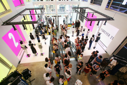 리모델링으로 재탄생한 포에버21의 명동 엠-플라자 매장은 기존 829평(2740m2)에서 983평(3249m2)으로 확연히 넓어진 공간을 재구성해 빠르게 변모하는 패션 시장에서 독보적이며 감각적인 포에버 21만의 가치를 전달 할 예정이다.