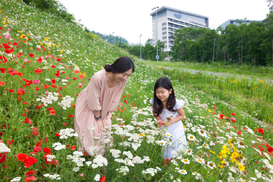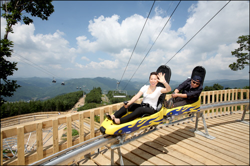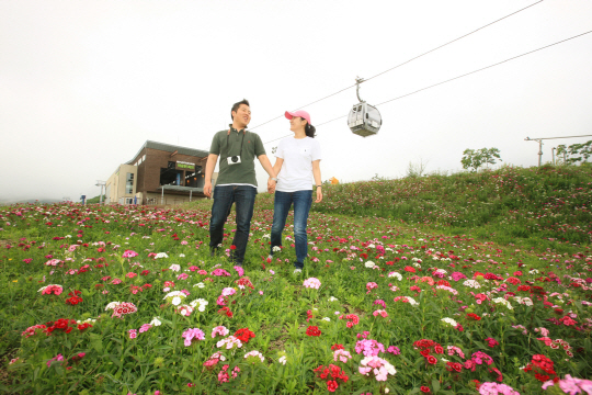 이즈음은 새로운 풍광이 펼쳐진다. 스키장 정상, 해발 1340m의 마운틴탑으로 곤돌라를 타고 올라가다 보면 겨울에는 눈으로 가득했던 슬로프에 야생화가 만발해 멋진 풍광을 연출한다.