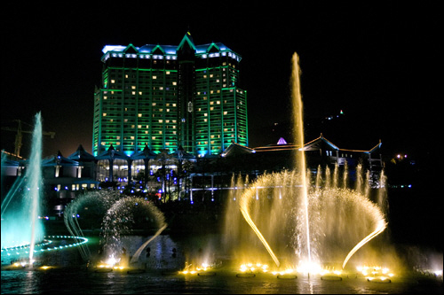 또 다른 장점으로는 호수공원이다. 호텔앞 호수공원에서는 화요일을 제외한 매일 밤 동양 최대의 멀티미디어 음악분수 공연이 펼쳐진다. 30분 동안 이어지는 공연에서는 화려한 조명 속에 28개 패턴의 다채로운 모양의 분수 쇼를 선보인다. 더불어 워터스크린에 펼쳐지는 레이저쇼 또한 환상적이다. 특히 전면이 통유리로 된 컨벤션호텔 객실에서 바라보는 음악분수와 불꽃쇼가 압권이다.