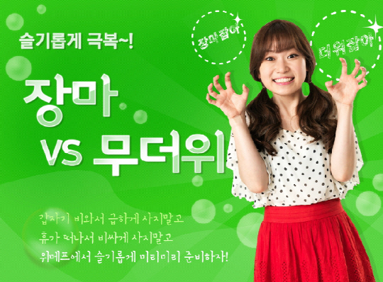소셜커머스 위메프(대표 박은상·허민, www.wemakeprice.com)가 '장마 vs 무더위' 기획전을 실시한다고 밝혔다.