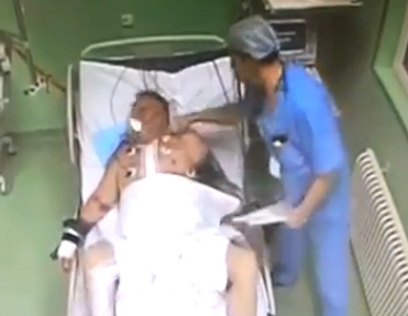 의사가 심장질환으로 누워있는 환자를 수차례 폭행하는 모습이 CCTV에 고스란히 촬영됐다.