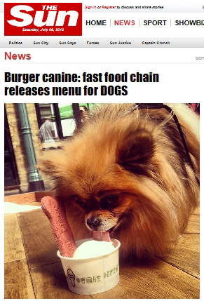 미국 유명 햄버거 체인이 개들을 위한 패스트푸드 메뉴를 선보여 화제다.