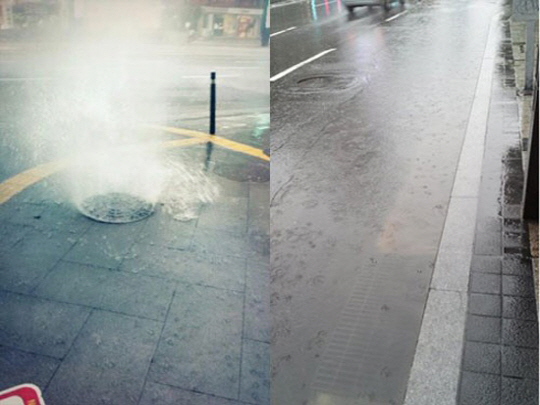 강남역 이상징후 “맨홀 위로 물 역류, 강남 워터파크”