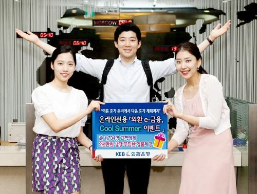 외환은행(은행장 윤용로/www.keb.co.kr)은 여름 휴가 시즌을 맞아 해외여행을 준비하는 고객들을 위한 온라인 전용 '외환 e-금융, Cool Summer! 이벤트'를 8월 30일까지 진행한다고 9일 밝혔다.