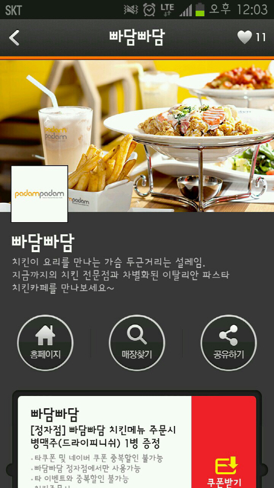 빠담빠담(대표이사 임은경)이 브랜드 인지도 제고와 고객의 성원에 보답하고자 빠담빠담 매장 일부에서 네이버 '열두시'라는 앱을 통하여 매일 정오 12시에 치킨메뉴 주문 시 병맥주 1병을 무료로 제공 받을 수 있는 쿠폰을 선착순으로 발행한다. 이벤트의 참가 매장은 정자점, 복정점, 한양대점, 사당역점, 센텀점 등으로 네이버 '열두시'를 설치하고 내려받은 쿠폰을 매장 종업원에게 제시하기만 하면 된다.