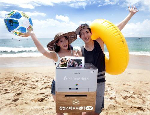 ◇삼성전자가 13일 부산 해운대에 삼성 스마트프린터 NFC 체험 공간을 열고 피서객들이 해수욕장에서 촬영한 사진을 삼성 스마트프린터만의 NFC 프린팅 기능을 이용해 손쉽게 출력하고, 이를 편지에 담아 가족, 친구들에게 전할 수 있도록 했다.