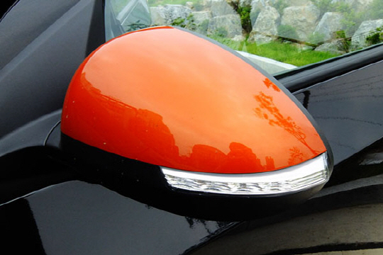 FUN 에디션은 오렌지색 미러캡과 리어스포일러, 블랙 건 메탈 16인치 알로이휠로 남다른 포스를 풍긴다. 전고가 높지만 전장과 축거는 짧고, 전폭과 윤거가 넓은 형태여서 안정감을 준다.