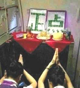 웨이보(중국판 트위터)에 올라온 사진을 보면 보라색 유니폼을 입은 항공사 여성 승무원 두 명이 기내에서 기내식 운반용 카트 위에 마련된 제단에 '정점'이라고 적은 글귀 앞에 무릎을 꿇은 채 머리 위로 두 손 모아 기도하는 장면이 담겨 있다. 제단위에 위패처럼 올려진 글자 '정점'은 바로 '제 시간'을 의미한다. 또한 이 승무원들은 중국 샤먼항공사 소속인 것으로 알려졌다.