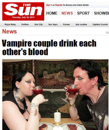 서로의 피를 마시는 뱀파이어 커플이 공개돼 화제다.
