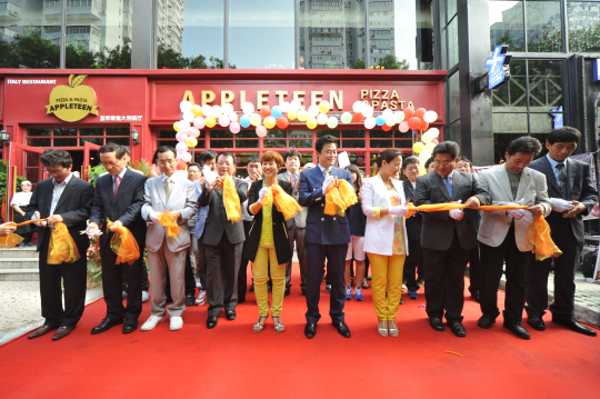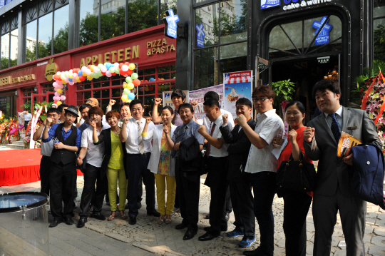 훌랄라가 지난 12일 중국 베이징 조양구 야인촌에 케익·와플 전문점 '라떼떼커피'와 이탈리안 레스토랑 '애플틴'의 오픈 개막식을 열었다.