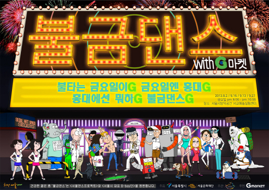 국내 최대 전자상거래 사이트 G마켓(www.gmarket.co.kr)이 서울시와 서울문화재단이 주최하는 '불타는 금요일 댄스파티(불금댄스파티)'를 후원하고 참가자를 모집한다.