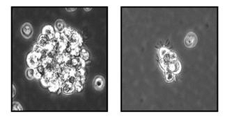 ◇ 뇌종양 줄기세포(A)에 EZH2를 억제한 결과 뇌종양 줄기세포가 크게 줄어(B)들었다.