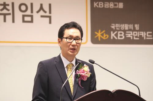 | ◇2013년 7월 22일 오전 서울 종로구 내수동 KB국민카드 본점에서 진행된 KB국민카드 대표이사 사장 취임식에서 심재오 KB국민카드 대표이사 사장이 취임사를 하고 있다. |