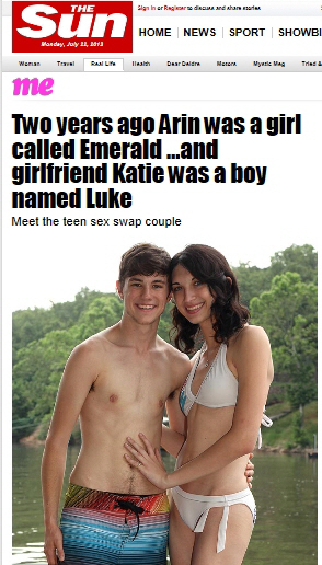 21일 영국매체 더 선은 성정체성 혼란을 겪다 1년전 함께 성전환 수술을 받은 미국 오클라호마주에 사는 케이티(19)와 애린(17)커플의 사연을 소개했다.