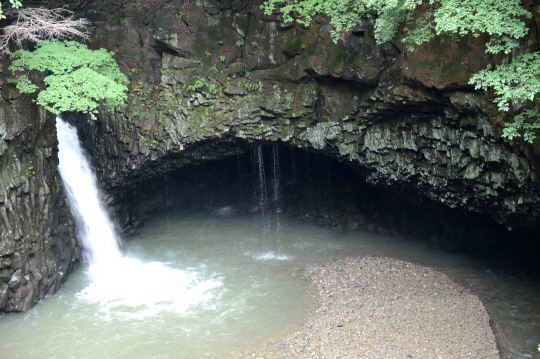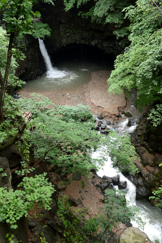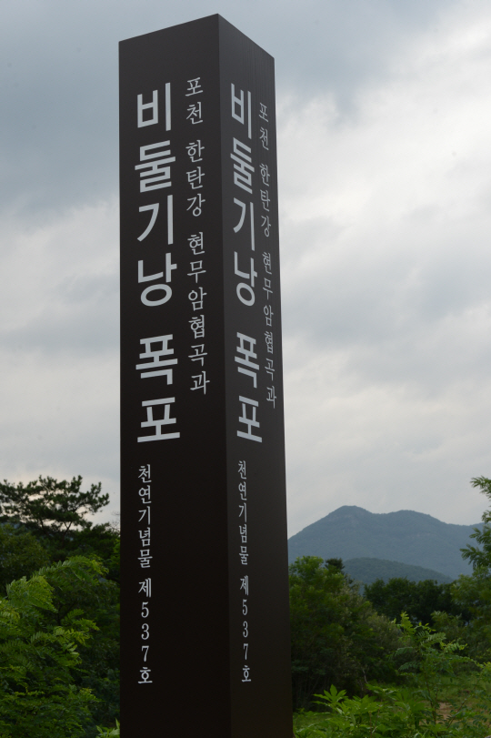한탄강이 굽이치고 산정호수를 품고 있는 포천은 여름 여행지로 제격이다. 그중 포천시 영북면 대회산리 한탄강변의 비둘기낭 폭포는 장마철에 진면목을 드러내는 곳이다. 30여 만 년 전 유출된 용암이 굳은 뒤 침식돼 이뤄진 주상절리 협곡과 동굴로, 근자에 천연기념물(제537호)로 지정됐다.