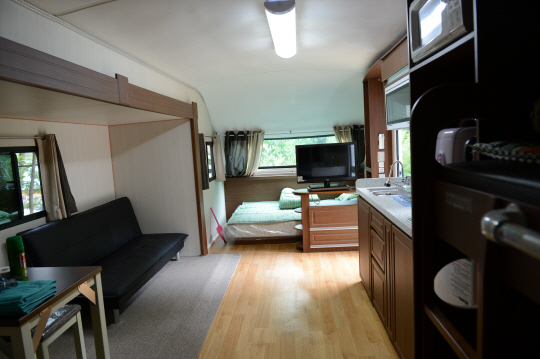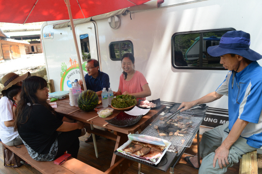 최근 이동주택용 트레일러를 이용하는 카라반 캠핑이 새로운 레저문화로 주목받고 있는 가운데, 비가 잦은 여름철에 더욱 인기를 끌고 있다. 그도 그럴 것이 카라반은 침대나 화장실 등 각종 편의시설을 갖춘 이동주택용 트레일러를 이용한다. 때문에 캠핑 장구를 챙기거나 텐트를 치고 걷는 번거로움 없이 쾌적한 공간에서 아웃도어 라이프를 즐길 수 있다. 한마디로 몸만 가면 되는 시스템이다. 카라반과 연결된 데크에서는 바비큐도 즐길 수 있다.
