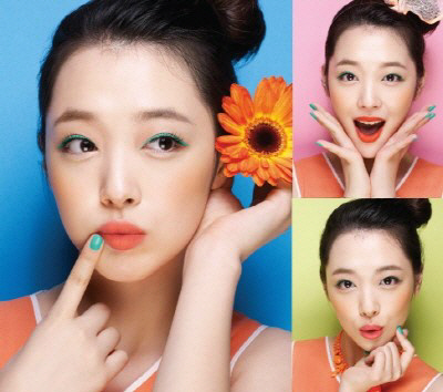 에뛰드하우스 모델 설리는 올 여름 트렌디한 뷰티 아이템으로 주목받고 있는 '오렌지 립스틱'을 붉은빛이 감도는 것부터 노란빛이 감도는 것까지 자연스럽게 소화해낸 메이크업 룩을 공개 했다. 설리의 오렌지 립스틱은 '디어 마이 블루밍 립스-톡 컬러팝' 제품으로 올 여름 메이크업 트렌드인 오렌지 컬러를 부드러운 코랄 빛 오렌지부터 완벽한 오렌지, 강렬한 레드 오렌지까지 10가지의 다양한 오렌지 컬러로 구성한 것이 특징.