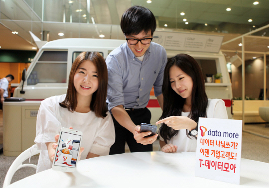 또 회사에 다니지만 개인명의의 스마트폰을 사용하는 사람들도 법인명의 폰 사용자들과 함께 'T데이터모아' 가입이 가능하며, 같은 회사에 재직 중인 개인명의 폰 사용자 20명 이상이 모인 경우에도 가입할 수 있다.