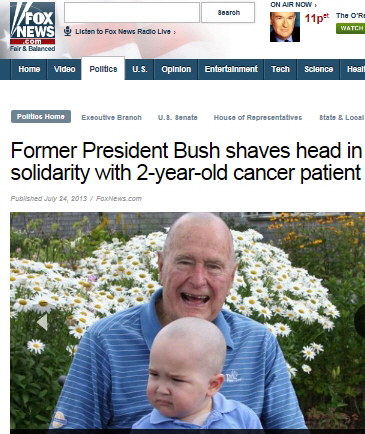 조지 H.W. 부시 전 미국 대통령(89)이 백혈병을 앓고 있는 소년을 위해 자진 삭발을 했다.