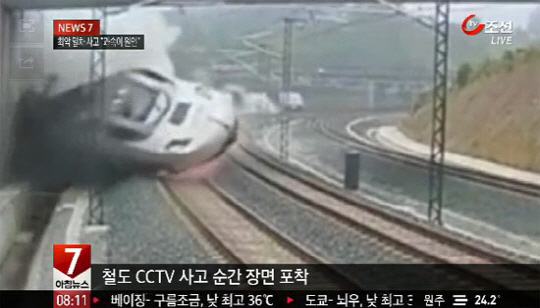 스페인 고속열차 사고 상황을 담은 폐쇄회로 화면이 공개됐다.