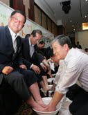 대상(주)는 26일 호텔 프리마에서 협력사와의 동반성장을 약속하는 행사를 가졌다. 대상(주) 명형섭 대표와 임원들이 협력사 대표들을 대상으로 동반성장의 의지를 담아 세족식을 진행했다. 송진현 기자